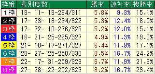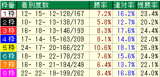 ・過去1年同コース枠番成績