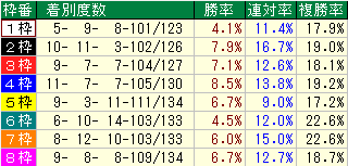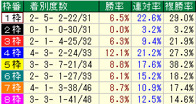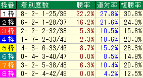 ・同コース過去1年枠番成績