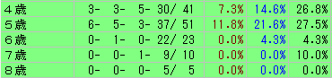 馬齢別の成績は上の表のとおりです。