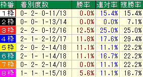 ざっくり見ると内枠の成績が悪いです。