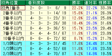 初角位置別の成績です。