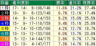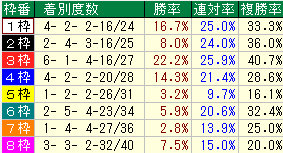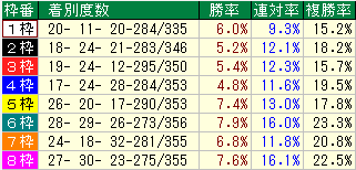 ・同コース過去1年枠番成績