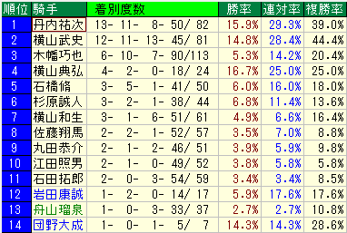 ・同コース過去1年騎手成績
